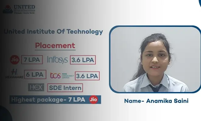 I am grateful to the CRC and faculty members who provided me with unwavering support and guidance throughout my academic journey. The four years spent at this institution have transformed my personality & honed my skills. The curriculum was well-structured, industry-relevant, and provided ample opportunities for practical learning and personal growth. I would like to express my heartfelt gratitude to CRC for their invaluable guidance and support, which helped me secure job opportunities in Codeyoung (7.36 LPA), Jio Platform limited (6 LPA), TCS Ninja( 3.36 LPA) & HCL(3.25 LPA). I am thankful to United Group of Institutions for providing me with opportunities & environment that helped me to upgrade myself.